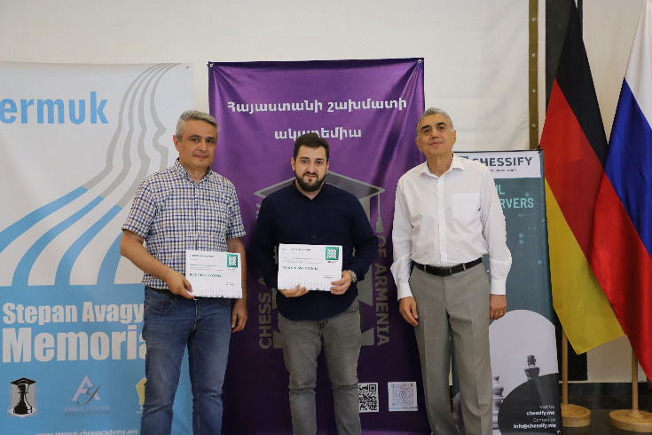 Harutyun Sargsyan, President of the Vayots Dzor Chess Federation, Stepan Avagyan's family, and Smbat Lputyan, founder-president of the Chess Academy of Armenia, were all present.